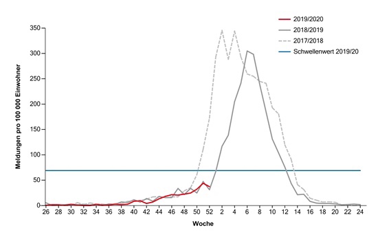 If we look at the chart below courtesy of the Federal Office of Public Health when the flu epidemics peaked in previous years, we‘re likely to see a peak over the coming weeks… so keep healthy!